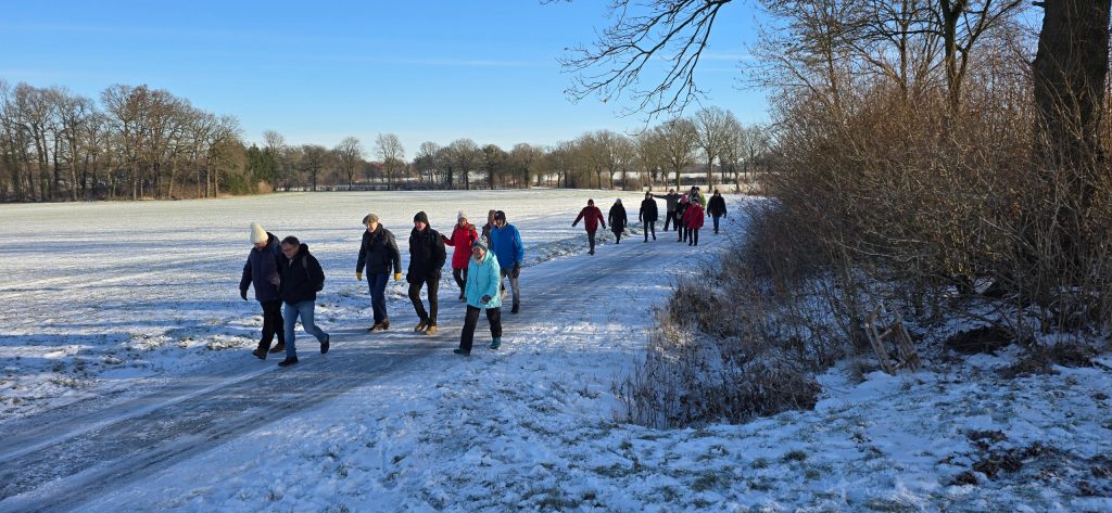 Am 11.01. stand bei uns nicht Probenplan, sondern Winterwanderung auf dem Programm: Gemeinsam ging es von Ennigerloh nach Enniger zum Haus Wieler – frische Luft, gute Gespräche und natürlich beste Stimmung inklusive. Bester Sonnenschein bei -2 Grad und sogar noch dem ein oder anderen Bisschen Schnee auf den Feldern.
